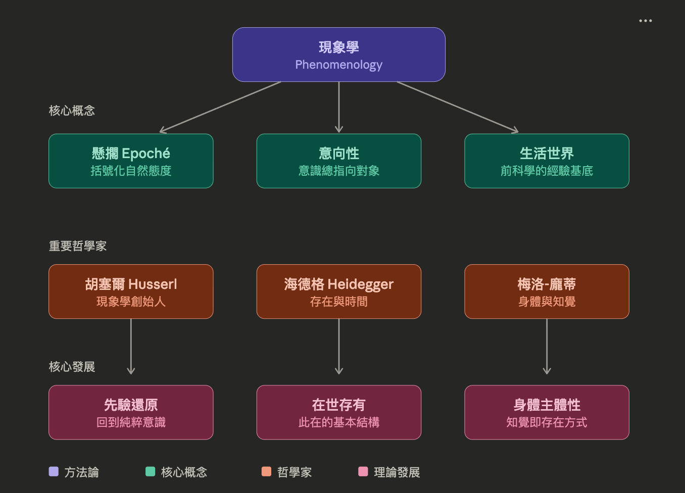 Claude 看了我的結構表示,很好,這很現象學。而且你在跟我討論前,就自己發展出這樣的架構,然後再來跟我討論,這件事情本身就很有現象學的 vibe